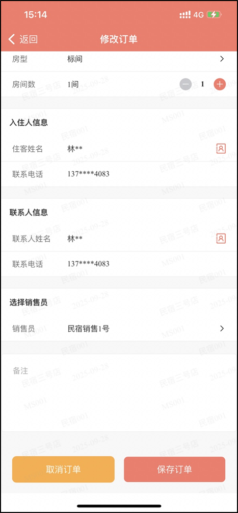 - 客房预订完成后自动关联工号对应销售员