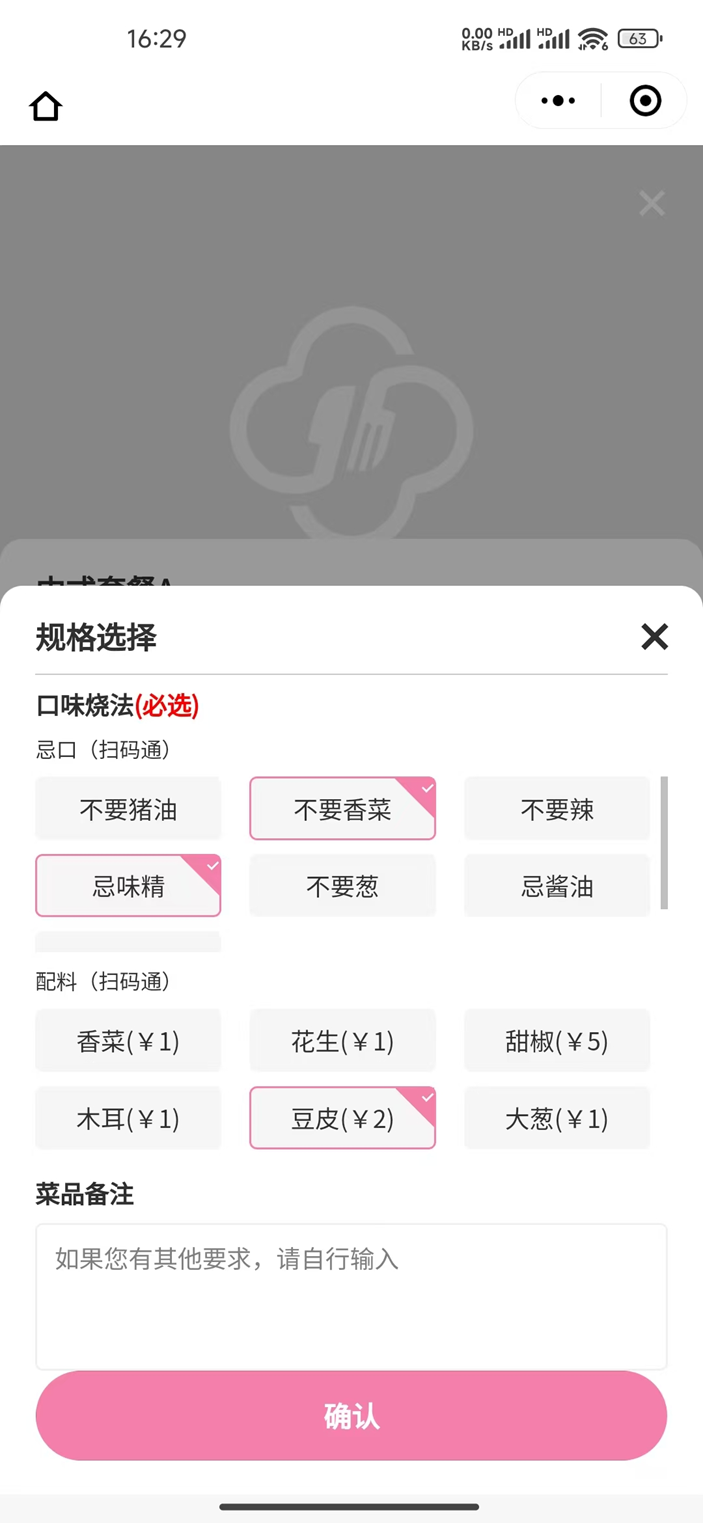 ■ 选完后,需在明细菜上体现已选烧法,仅一行显示即可,超过了显示“…”