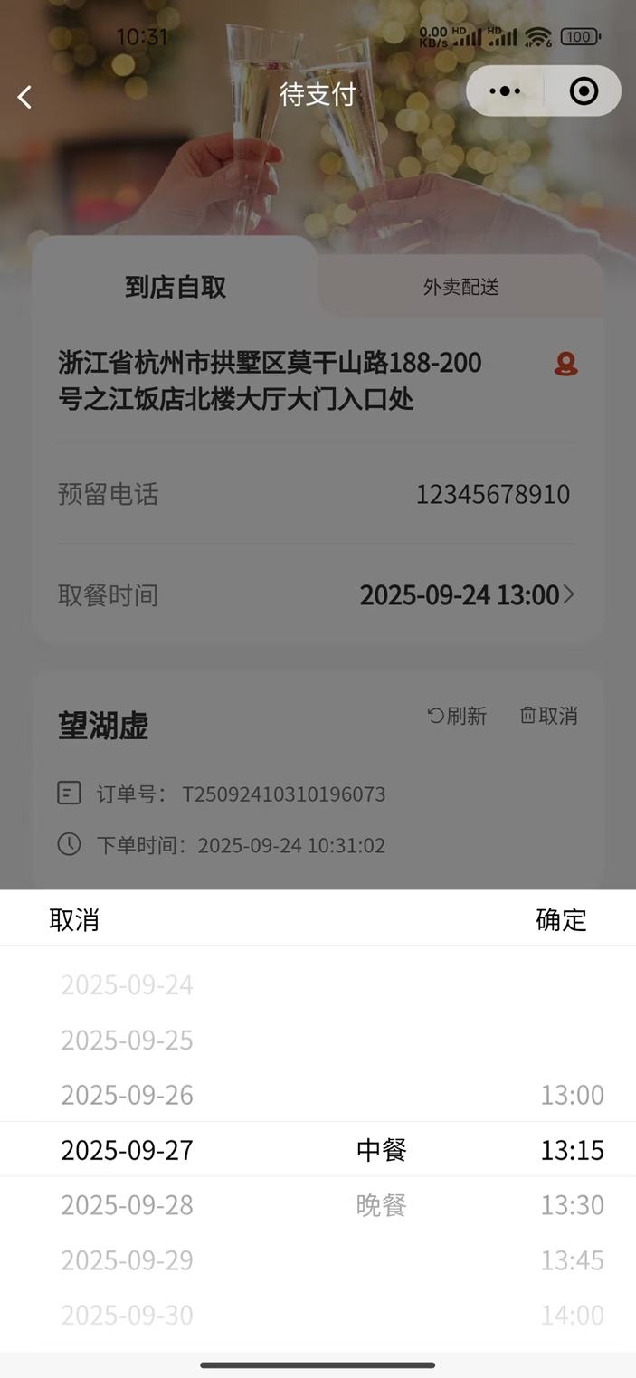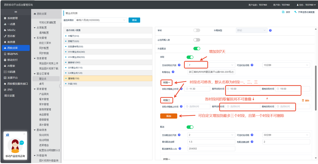● 外卖模式(三期):开放7天预订以及支持多时段取餐,满足酒店一天内需要支持中餐和晚餐的取餐需求
