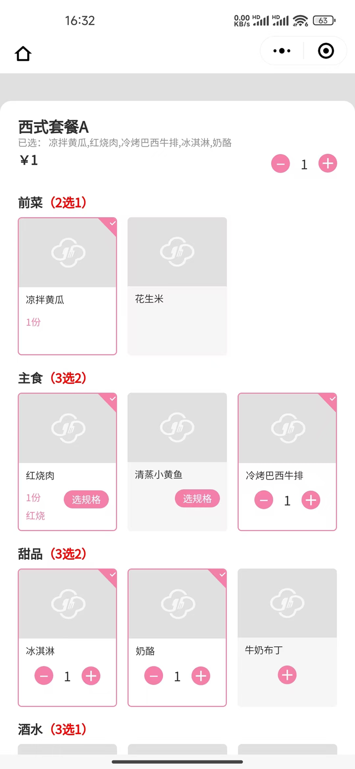 ■ 因此需要调整中式套餐点菜界面的明细形式,跟西式套餐一样