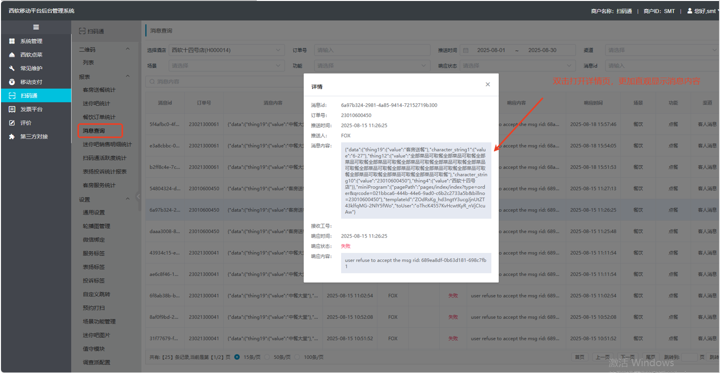 ○ 扫码通-消息查询,增加消息详情查看界面(弹窗形式)