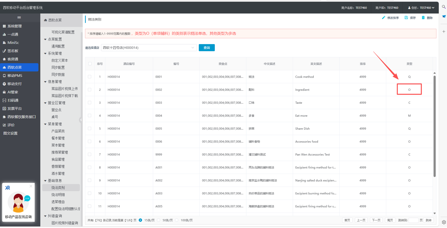 ■ 类型是“O”单项辅料表示单选,其他类型为多选,跟餐饮通一致