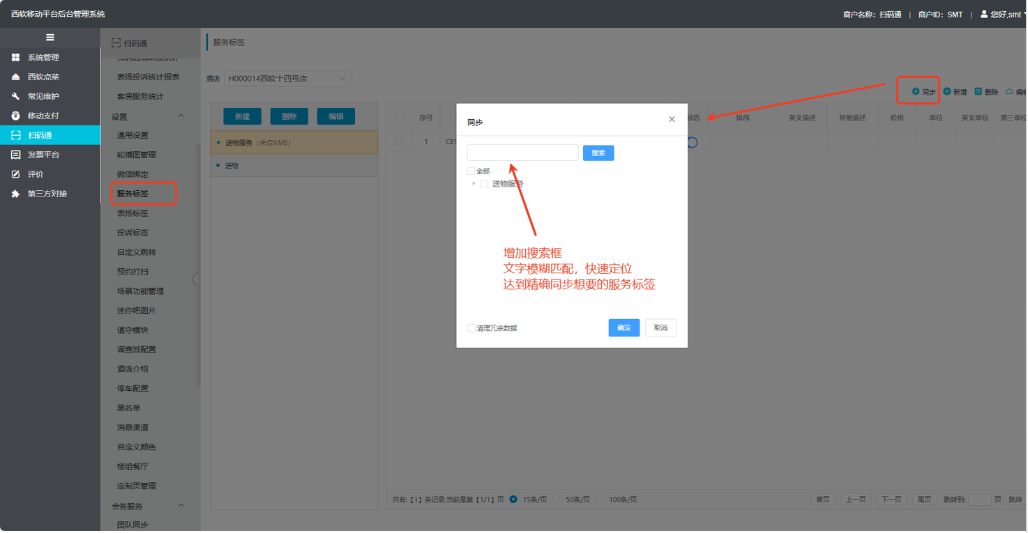 ○ 扫码通-服务标签-同步,在xms可选的标签列表,增加搜索功能
